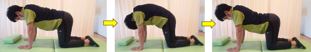 ①四つばいになります。(膝下に布団やタオルを敷くと膝が楽になります)